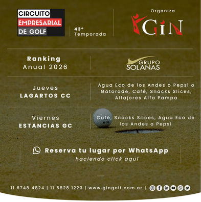 Uno de nuestros productos principales es el Circuito Empresarial de Golf, que se desarrolla de manera ininterrumpida desde 1983, con el apoyo de grandes marcas.